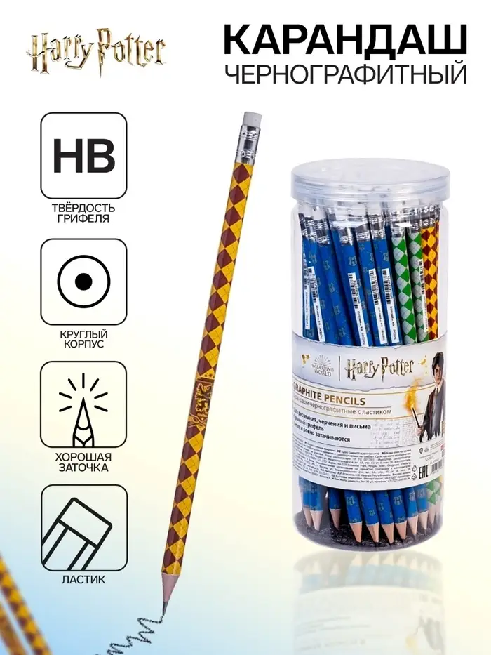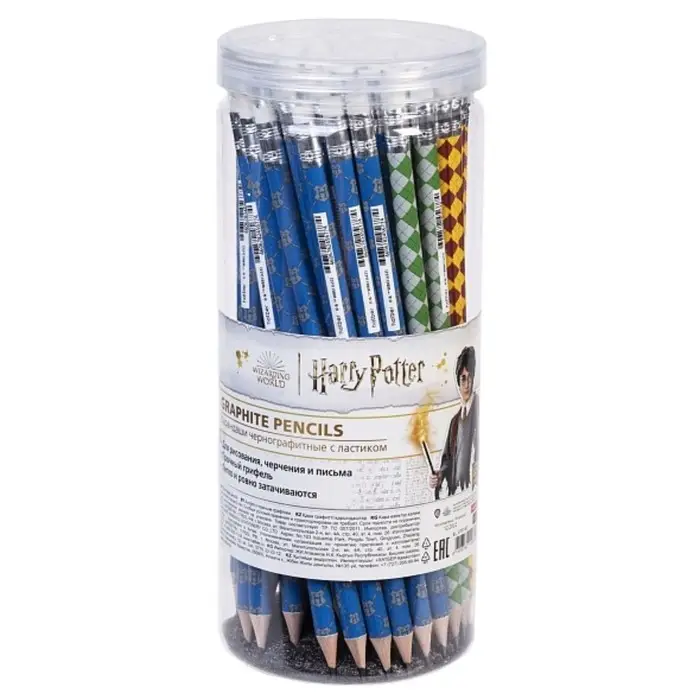 Карандаш чернографитный с ластиком, HB «Гарри Поттер», круглый, заточенный, в пластиковой тубе