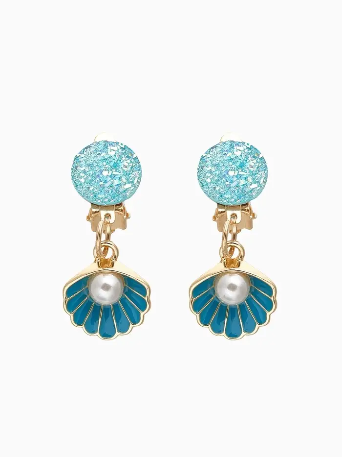 Клипсы детские «Выбражулька» жемчужина в ракушке, цвет голубой