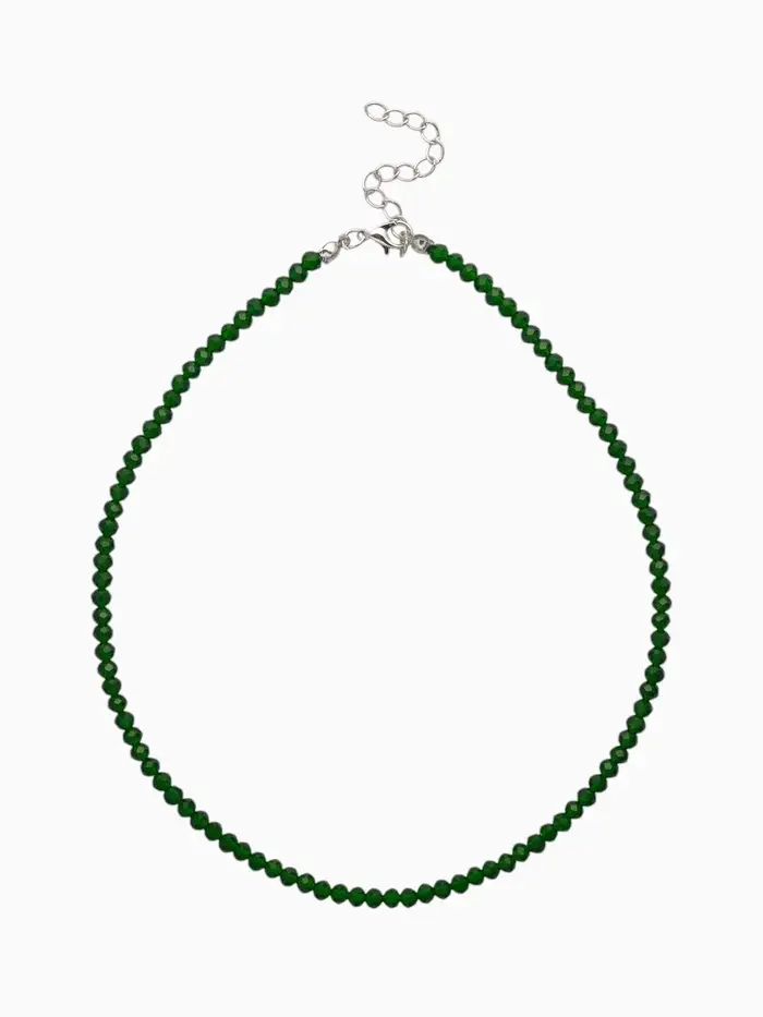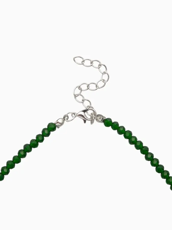 Чокер из бисера «Хрусталь», травяной в серебре, 37 см + 5 см доп, цепочка