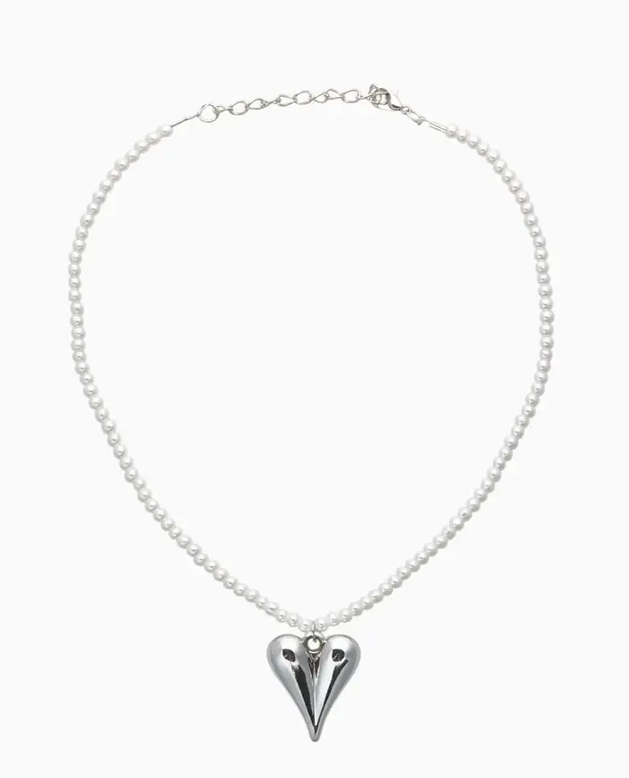 Чокер «Сердце» жемчужные бусины, цвет белый в серебре, 33 см + 5 см доп, цепочка