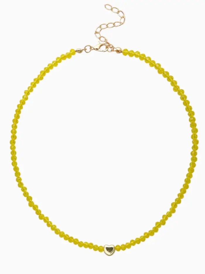 Жёлтый бисерный чокер с металлическим сердечком на золотистой основе — стильный аксессуар для женщин, стремящихся добавить яркости и тепла в образ. Регулируемая длина обеспечивает удобную посадку и подчёркивает линию шеи.