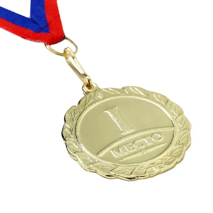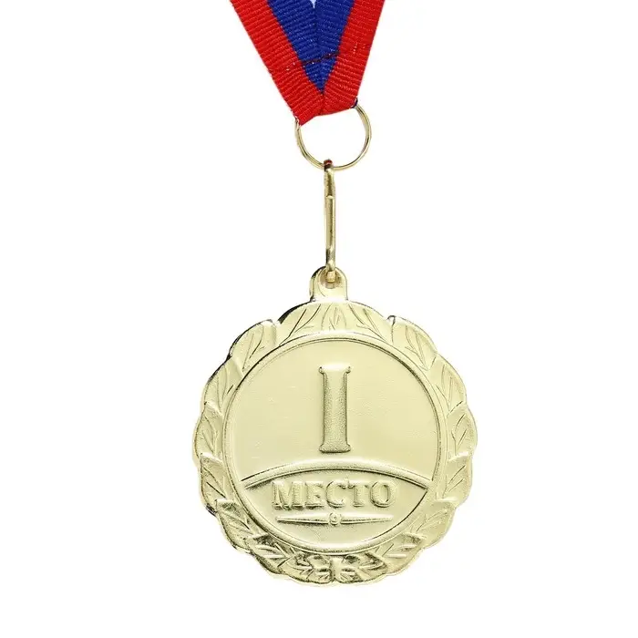 Медаль призовая 001, d= 5 см. 1 место. Цвет золото. С лентой
