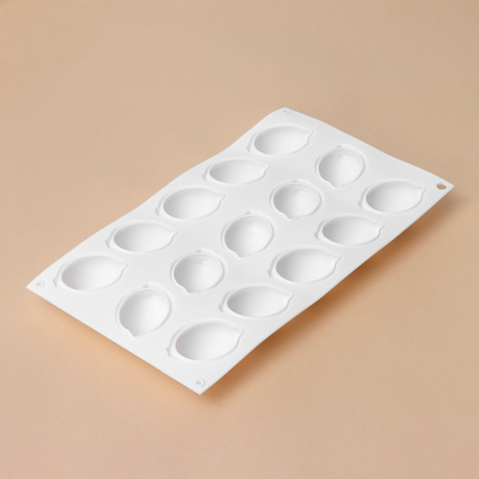 Форма для муссовых десертов и выпечки KONFINETTA «Лимоны», силикон, 29×17×3 см, 15 ячеек (5,5×4 см), цвет белый