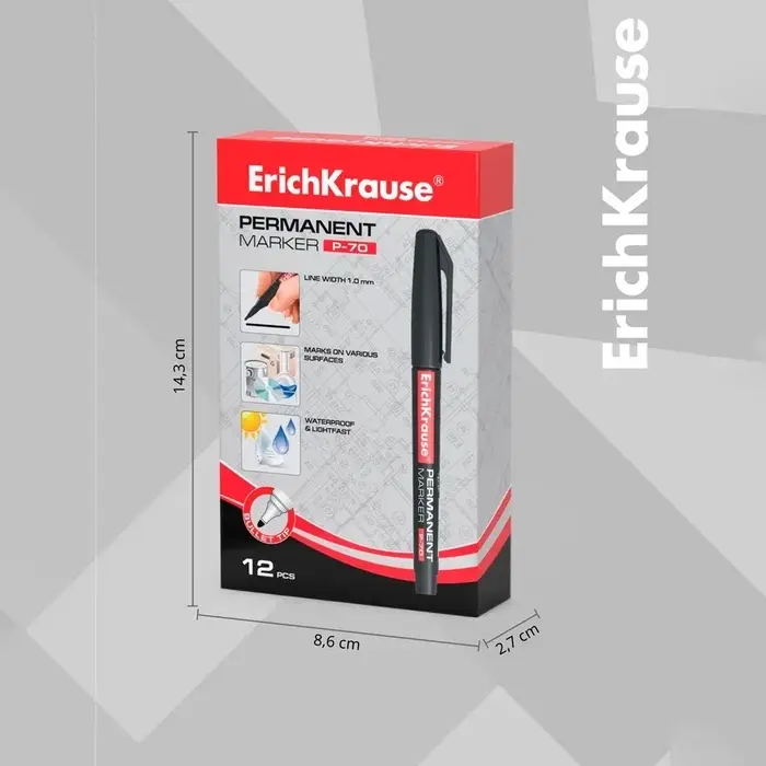 Маркер перманентный ErichKrause P-70, 1.0 мм, для письма на любой поверхности, чёрный