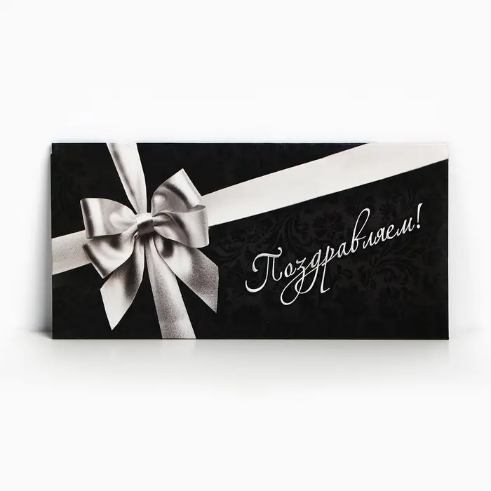 Конверт для денег «Поздравляем», серебряный бант, 16,5 × 8 см