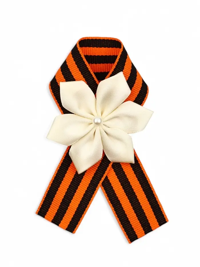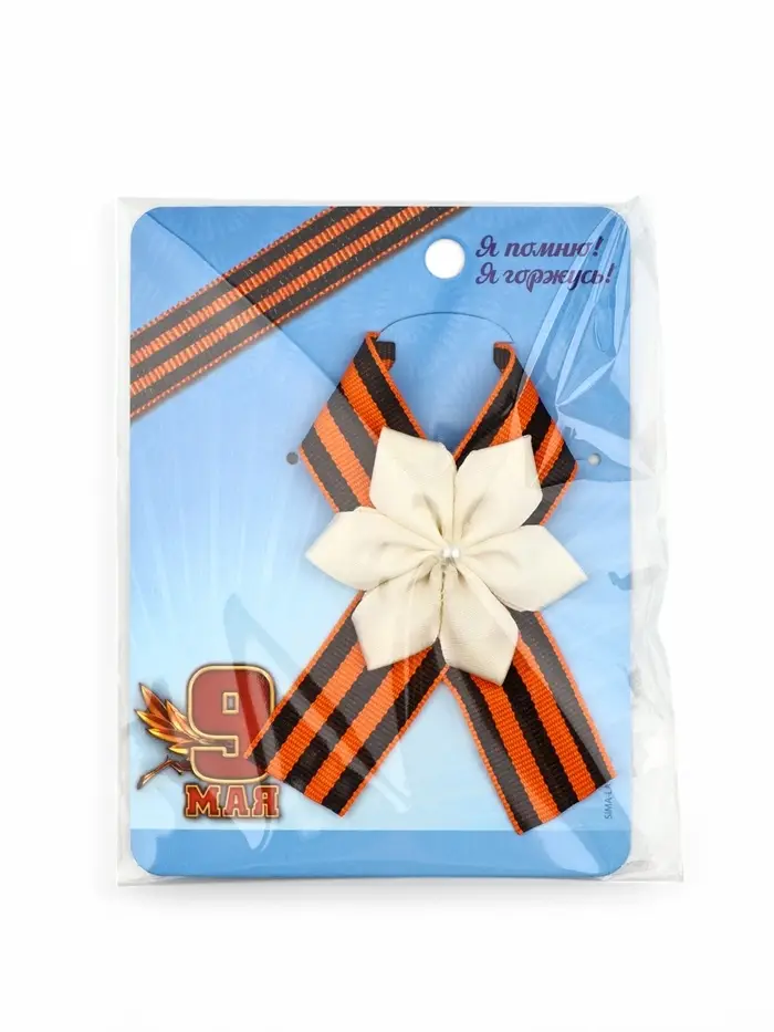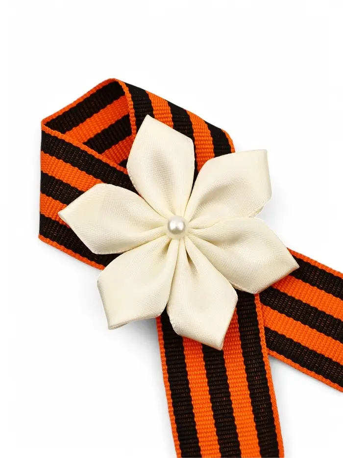 Значок с лентой и белым цветком на День Победы «9 Мая»