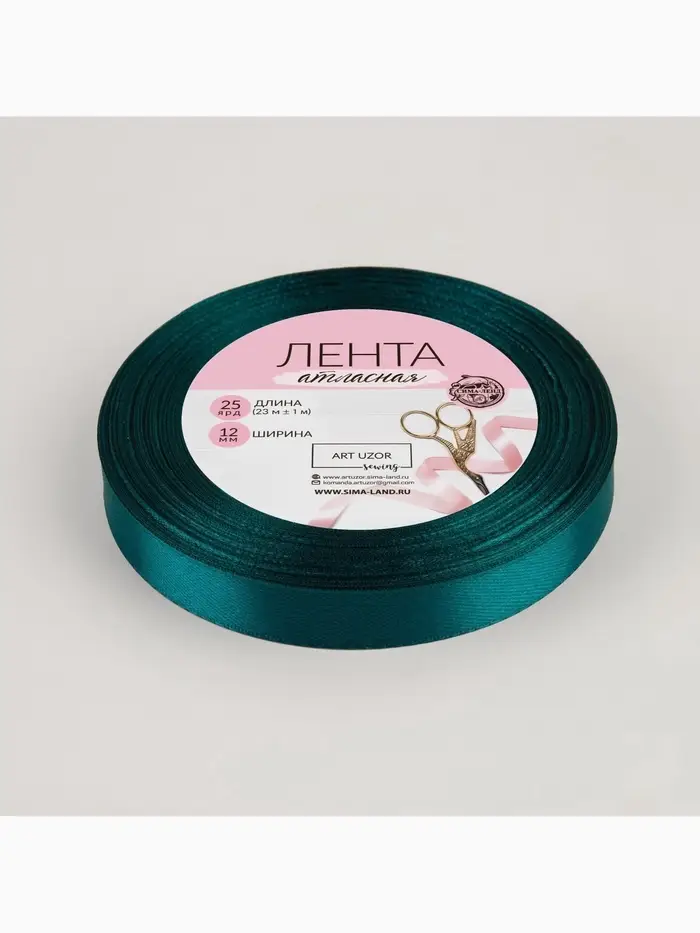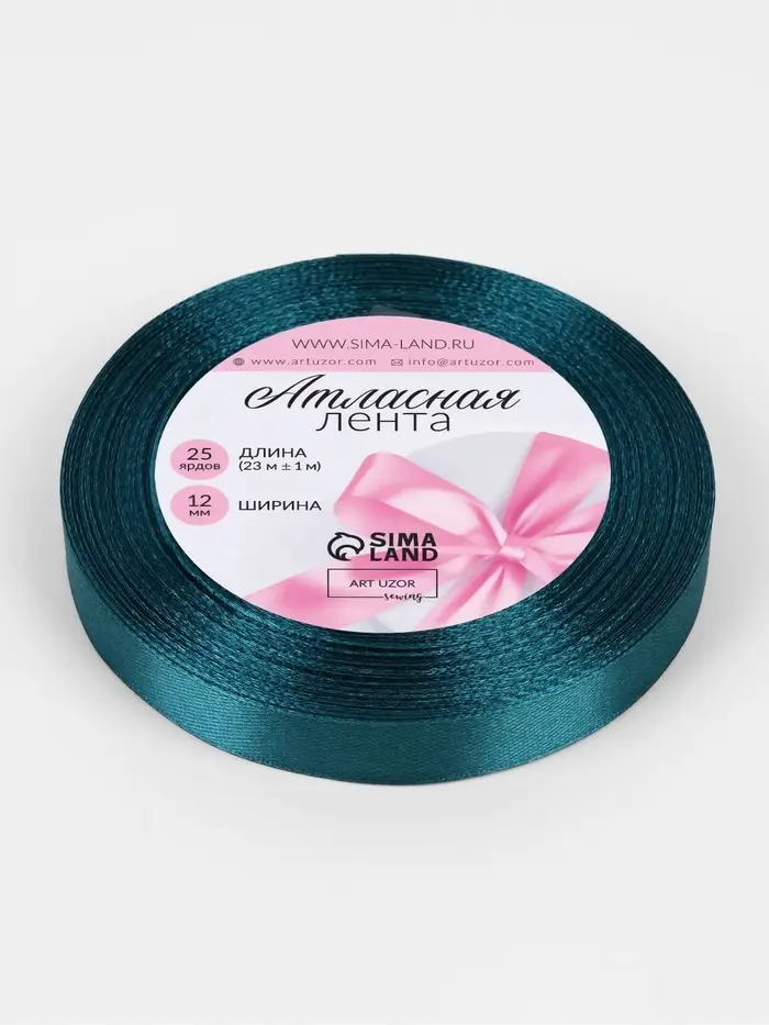 Лента атласная, 12 мм, 23±1 м, тёмно-бирюзовая №62