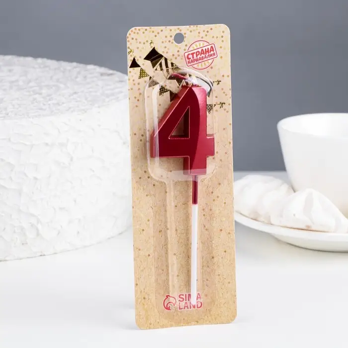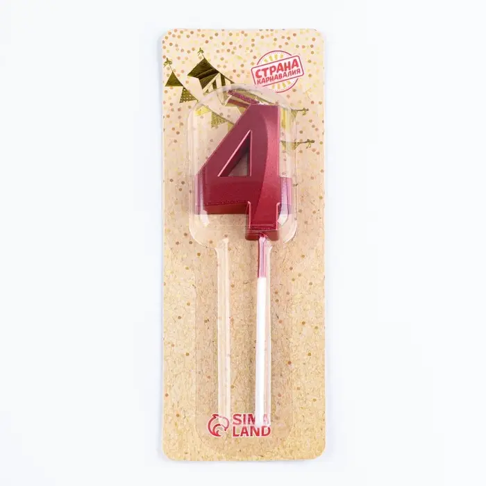 Свеча в торт на шпажке «Цифра 4», красная, 5 см