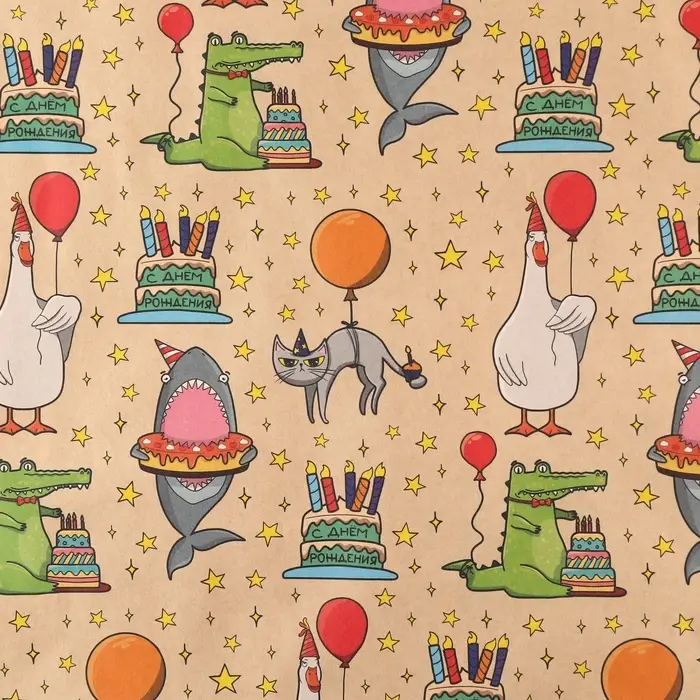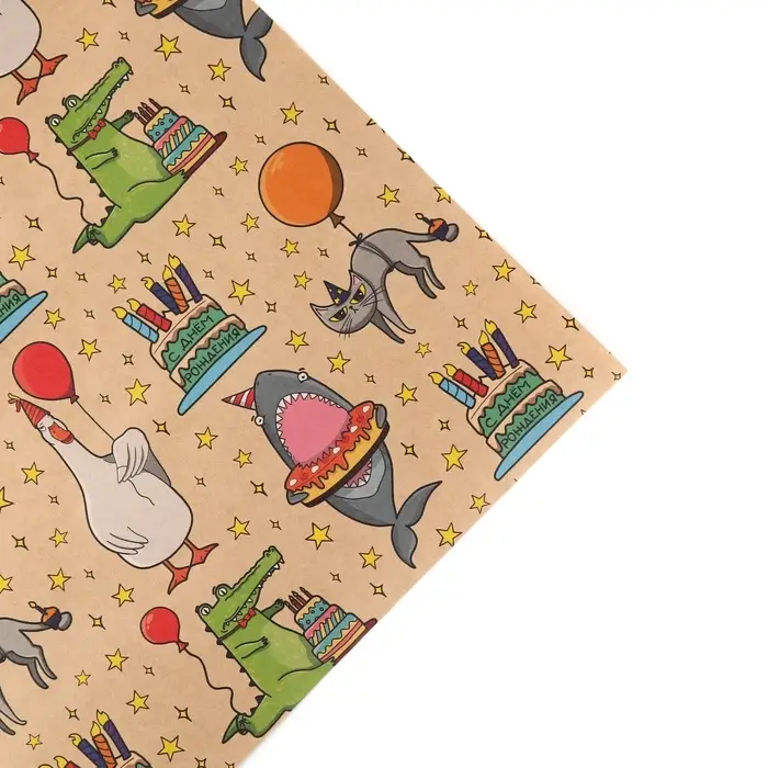 Бумага упаковочная крафтовая «Праздничные животные», 70 х 100 см