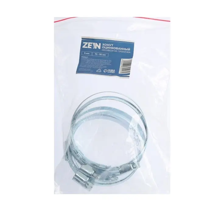 Хомут червячный ZEIN engr, несквозная просечка, диаметр 72-95 мм, ширина 9 мм, оцинкованный