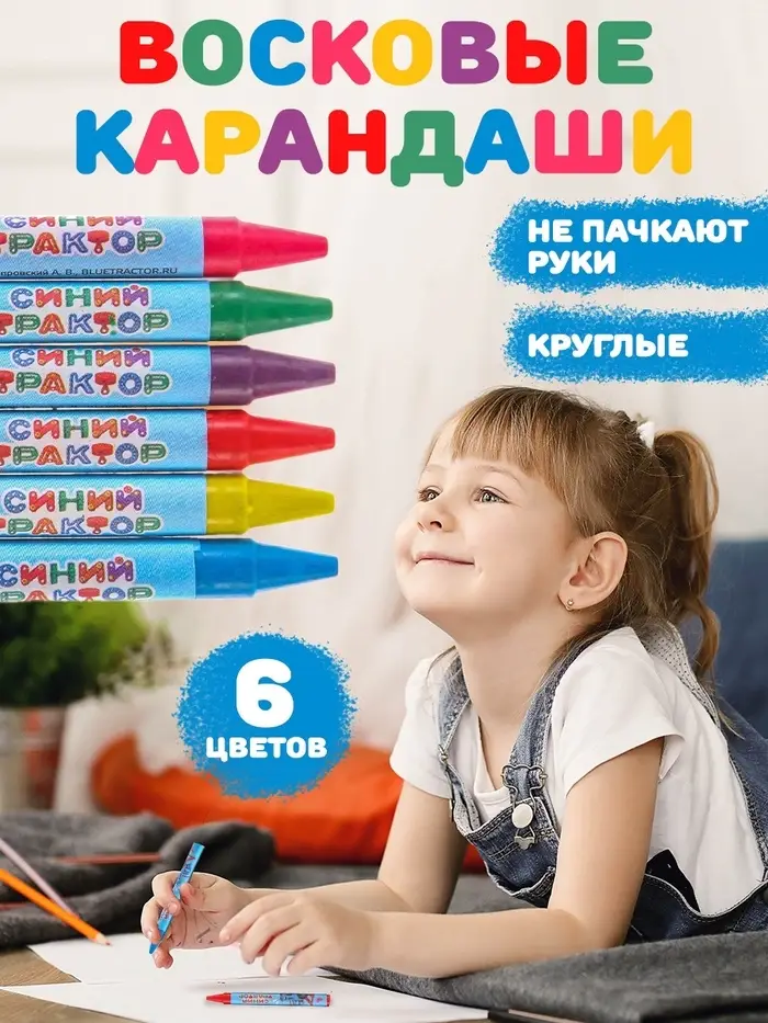 Восковые мелки - карандаши «Синий трактор», 6 цветов