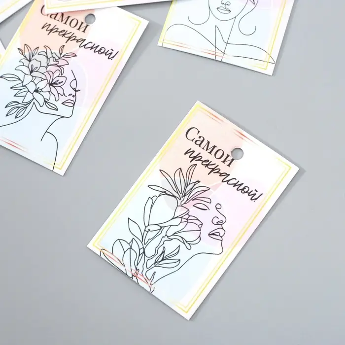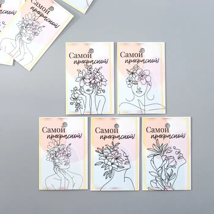 Бирка картон "Самой прекрасной" набор 10 шт (5 видов) 4х6 см