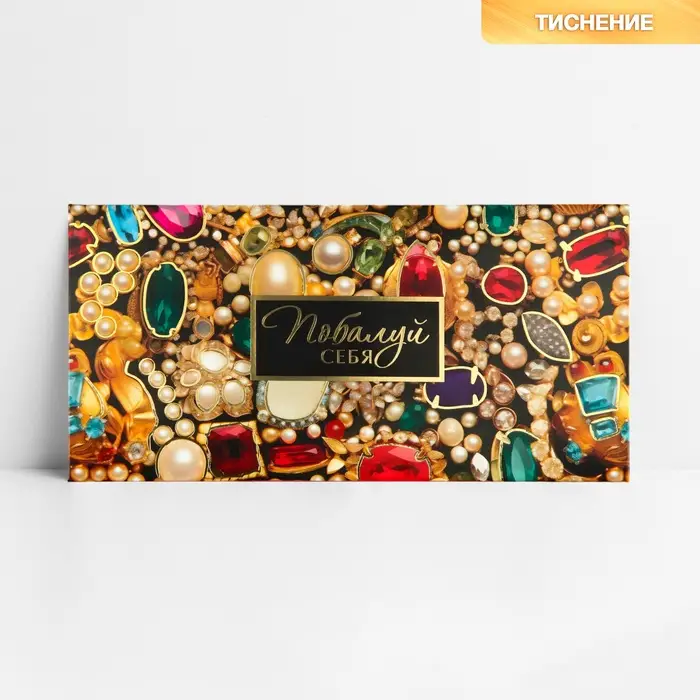 Конверт для денег «Побалуй себя», тиснение, 16.5 х 8 см