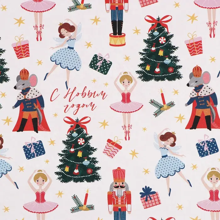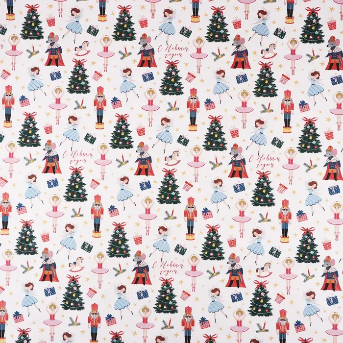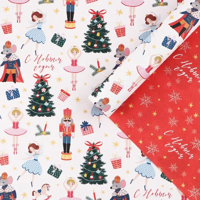Упаковочная бумага на новый год, двухсторонняя крафтовая «Новогодний щелкунчик», 70 х 100 см
