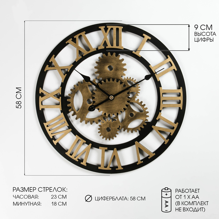 Часы настенные интерьерные большие Лофт, d=51 см