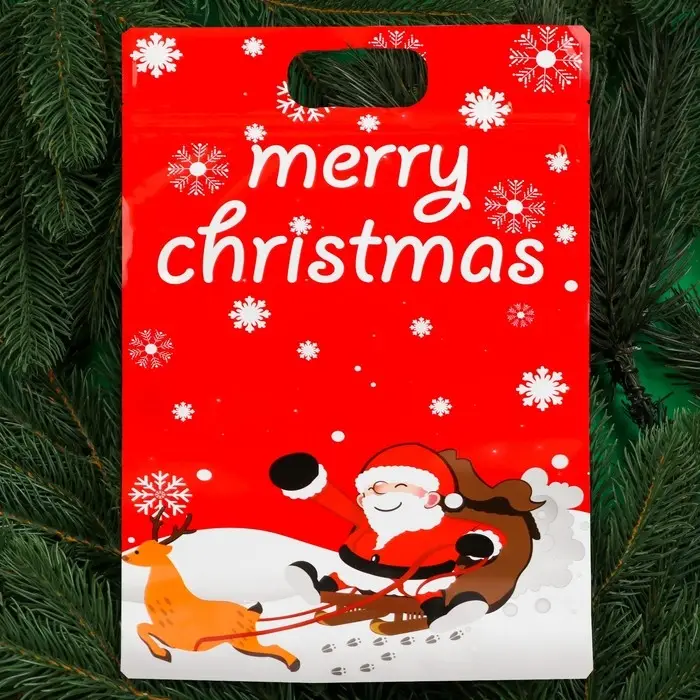 Подарочный пакет новогодний с застежкой zip-lock — это стильное и функциональное решение для упаковки праздничных подарков.