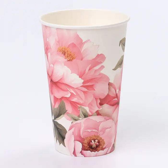 Стакан одноразовый бумажный для кофе «Пионы», 400 мл