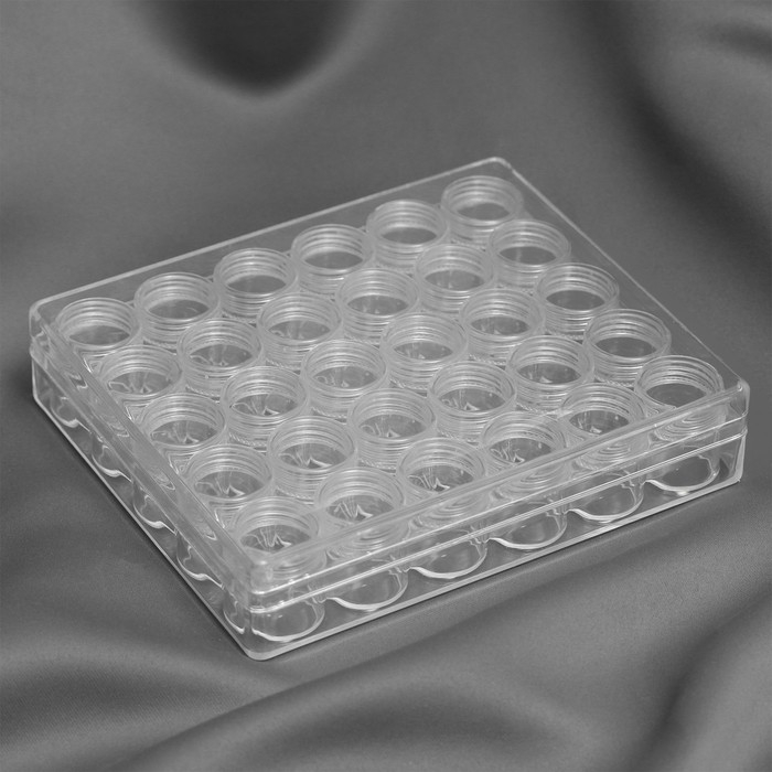 Набор баночек для рукоделия, 30 шт, d = 2 × 2,5 см, в контейнере, 16,5 × 13,5 × 3,5 см, цвет прозрачный