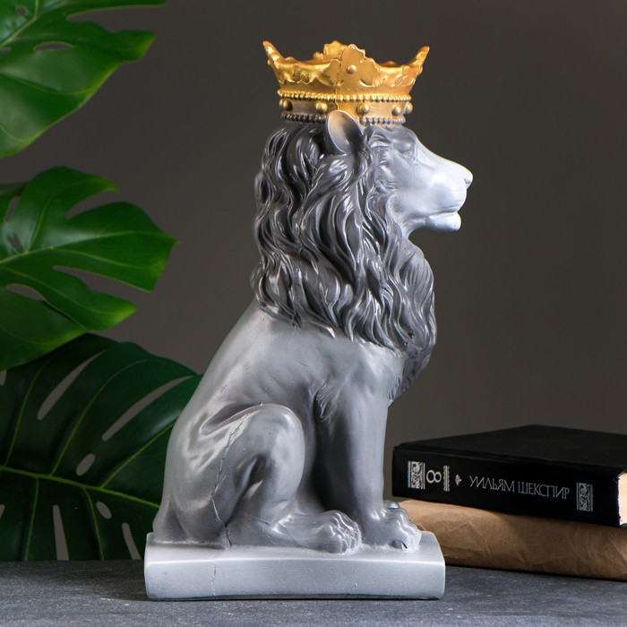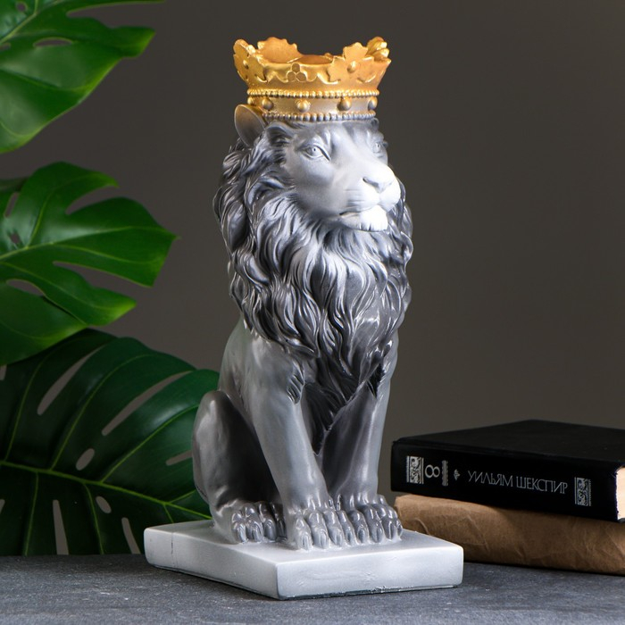 Копилка "Лев с короной" серый камень, 35см