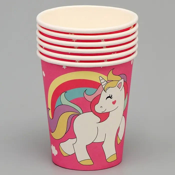 Стакан бумажный «Единорог и звёзды», набор 6 шт., 220 мл, розовый