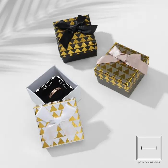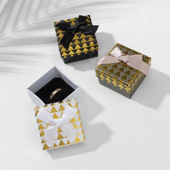 Коробочка подарочная под кольцо/серьги «Треугольники», 5×5 (размер полезной части 4.5×4.5 см), МИКС