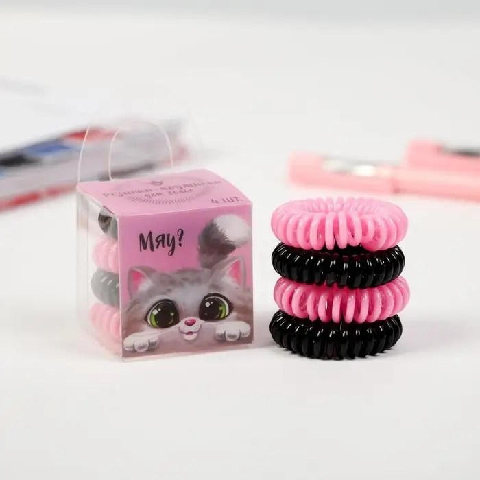 Резинки для волос пружинки «Котик», 4 шт, диам 3,5
