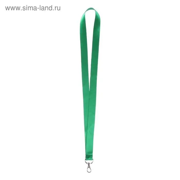 Лента для бейджа ширина-20 мм, длина-90 см с металлическим карабином, зелёная