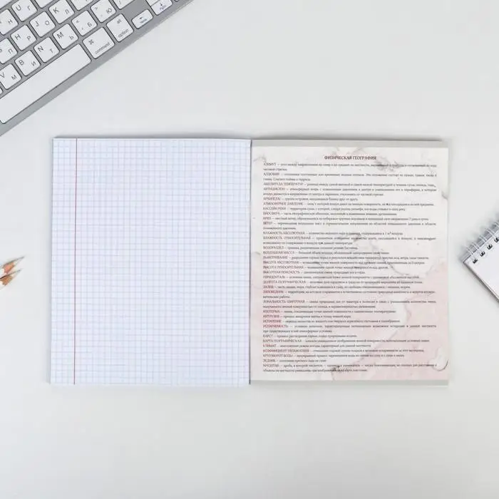 Тетрадь в клетку, предметная, 48 л.,на скрепке, А5 «МРАМОР. География»