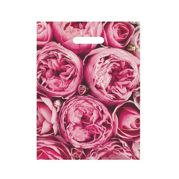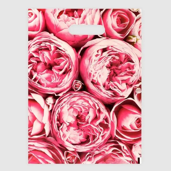 Пакет полиэтиленовый с вырубной ручкой "Пионы", розовые, 30х40 см, 50 мкм