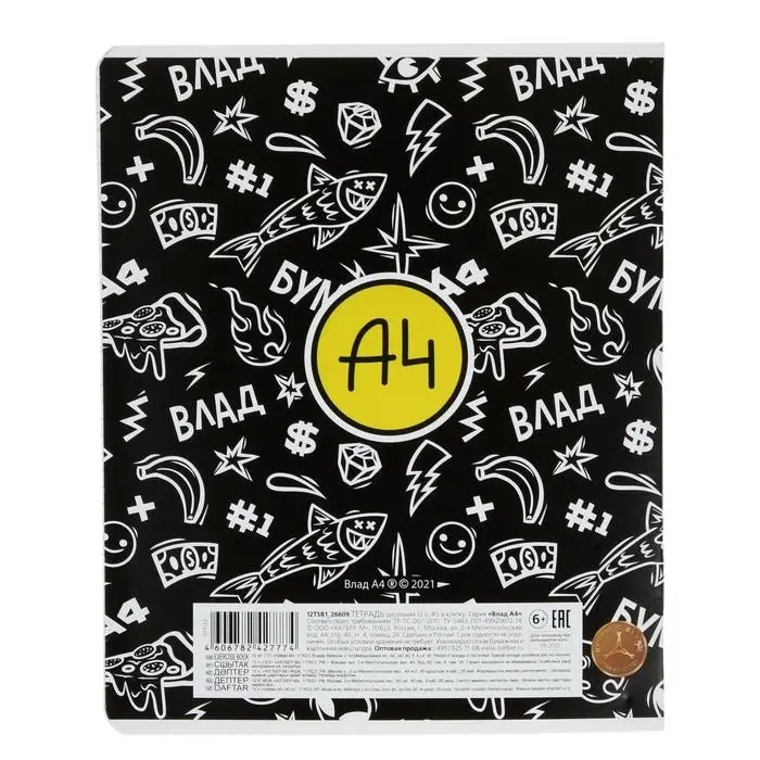 Тетрадь 12 листов в клетку Calligrata «Влад Бумага», обложка мелованный картон, МИКС