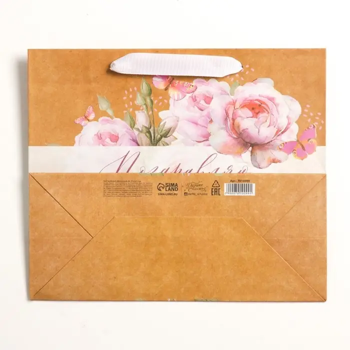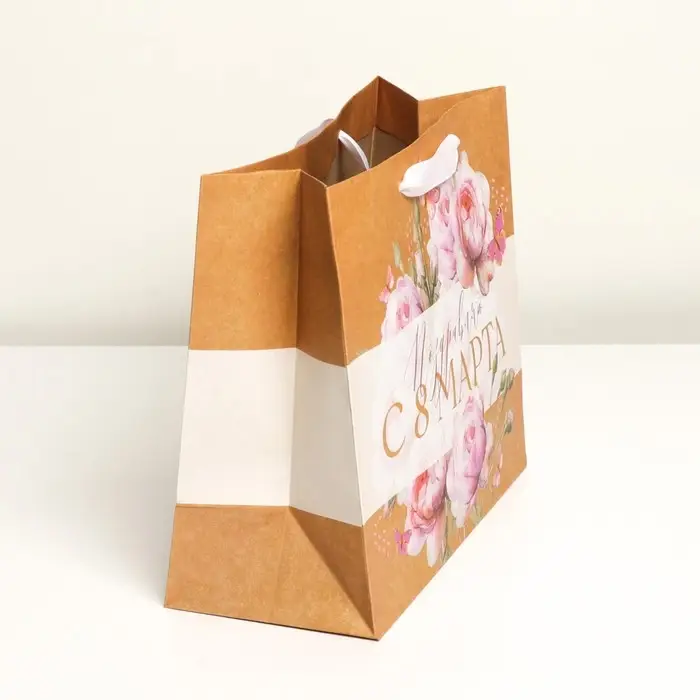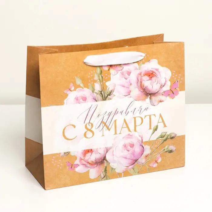 Пакет подарочный крафтовый, упаковка, «С 8 Марта», ML 27 х 23 х 11.5 см