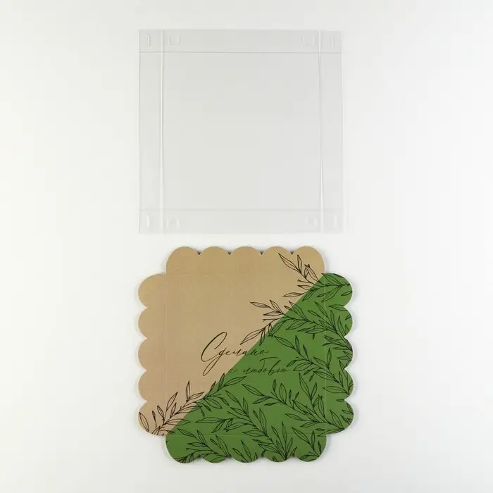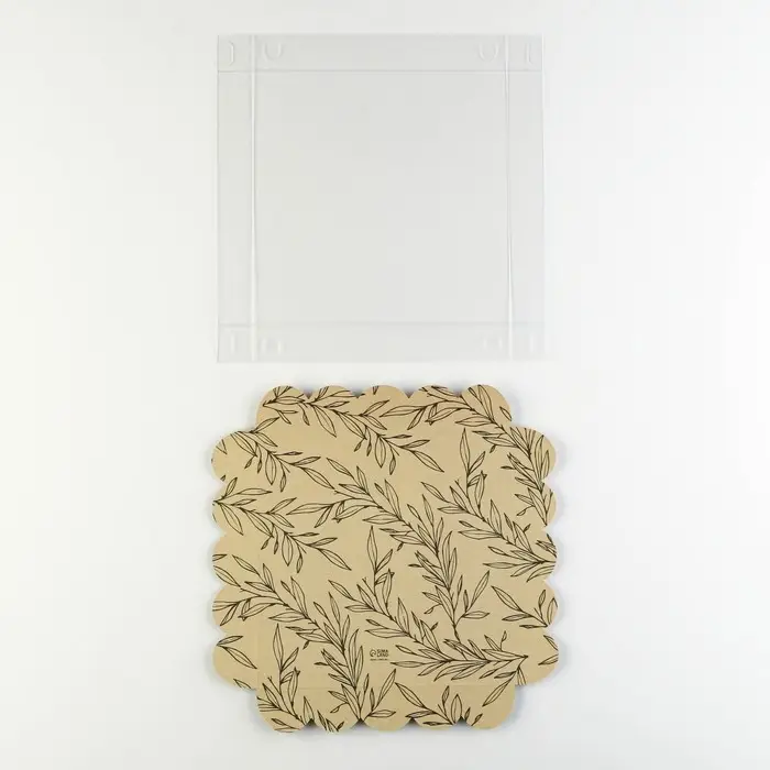 Коробка для печенья, кондитерская упаковка с PVC крышкой, «Крафт», 18 х 18 х 3 см