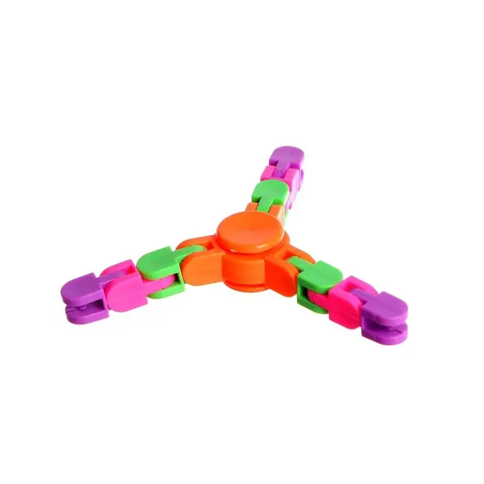В центре изделия находится подшипник, радиально расположены 3 лопасти. Они состоят из 9 разноцветных звеньев, соединённых между собой так, что их можно складывать различными способами. Детали легко поворачивать.