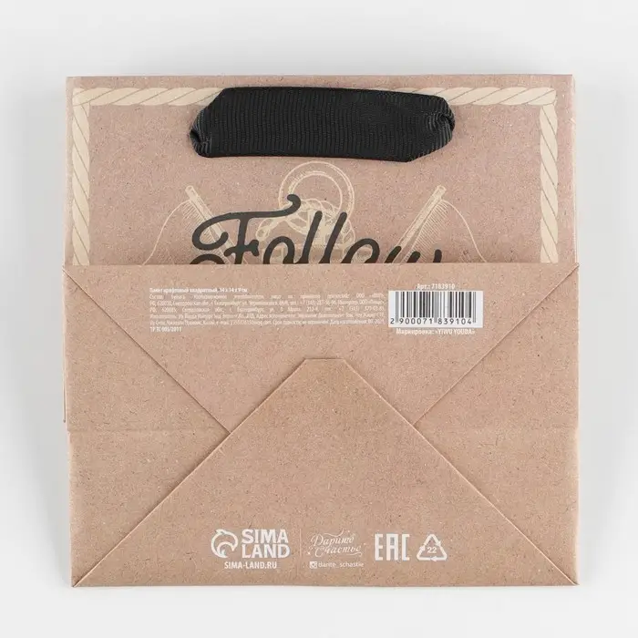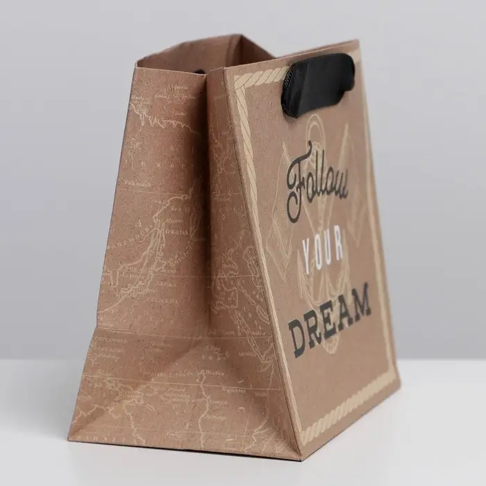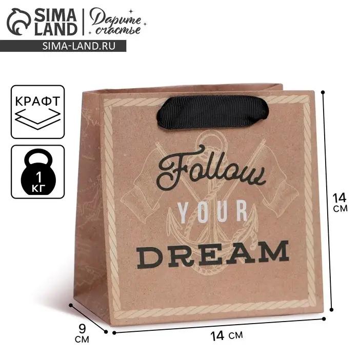 Пакет подарочный крафтовый квадратный, упаковка, «Follow», 14 х 14 х 9 см