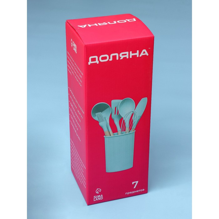 Набор кухонных принадлежностей Доляна «Лиам», 7 предметов, 33×12,5×12,5 см, цвет бирюзовый