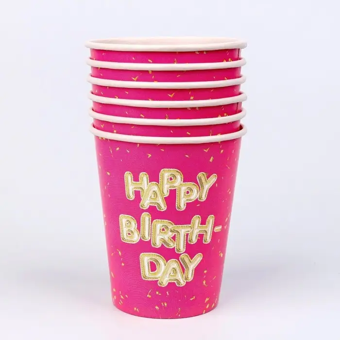 Стакан одноразовый бумажный «Happy Birthday», набор 6 шт., 250 мл
