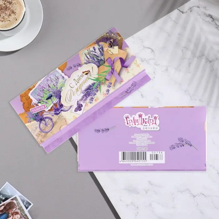 Конверт для денег "С Днём Рождения!" лаванда, 16х8 см