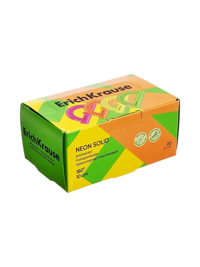 Транспортир 10см 180°, ErichKrause "Neon Solid", пластик, непрозрачный, коробка-дисплей, МИКС