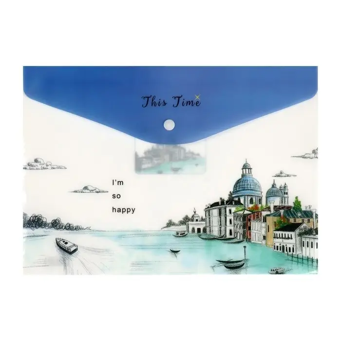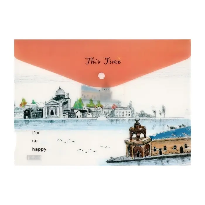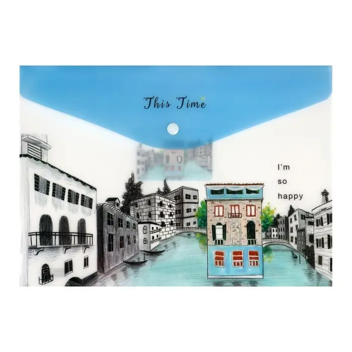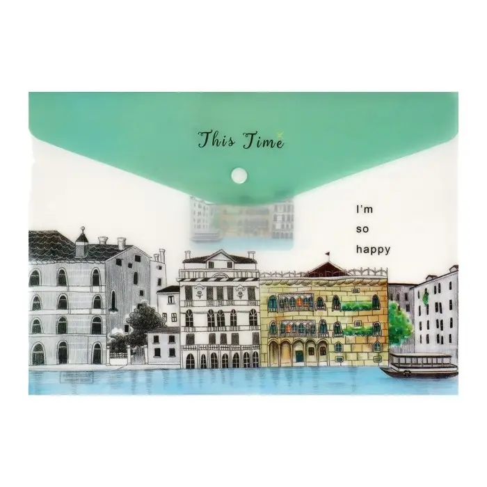 Папка-конверт на кнопке, А4, 180 мкм, "Город", МИКС