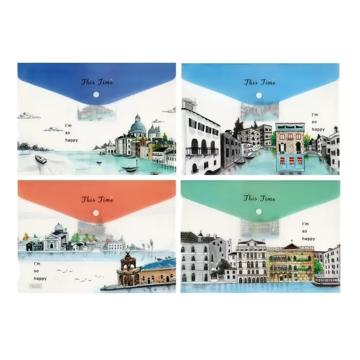 Папка конверт на кнопке А4, 180 мкм, Calligrata, полупрозрачная, с вертикальным расширением, микс