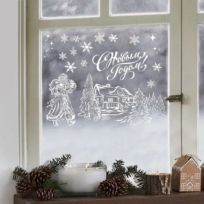 Наклейки новогодние на окна «С Новым годом», многоразовые, 50 х 70 см