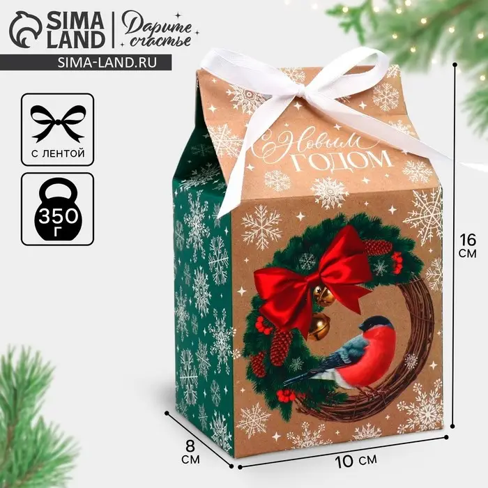 Упаковка для кондитерских изделий «С Новым годом», снегирь, 8 х 10 х 16 см, Новый год