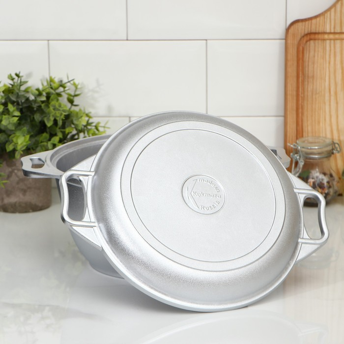 Казан, 3 л, крышка-сковорода, литые ручки, цвет серебряный