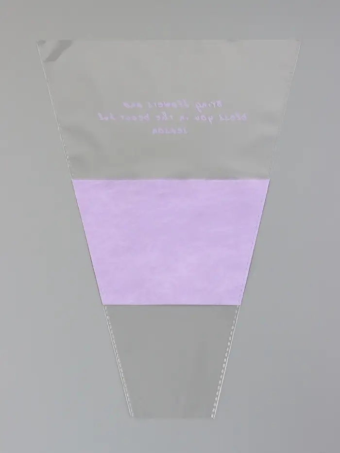 Шарм в деталях: Этот конус превращает букет в законченную композицию. Благородный лиловый оттенок придает торжественность, а практичная конструкция обеспечивает защиту цветов. Идеальный выбор для создания запоминающихся моментов.