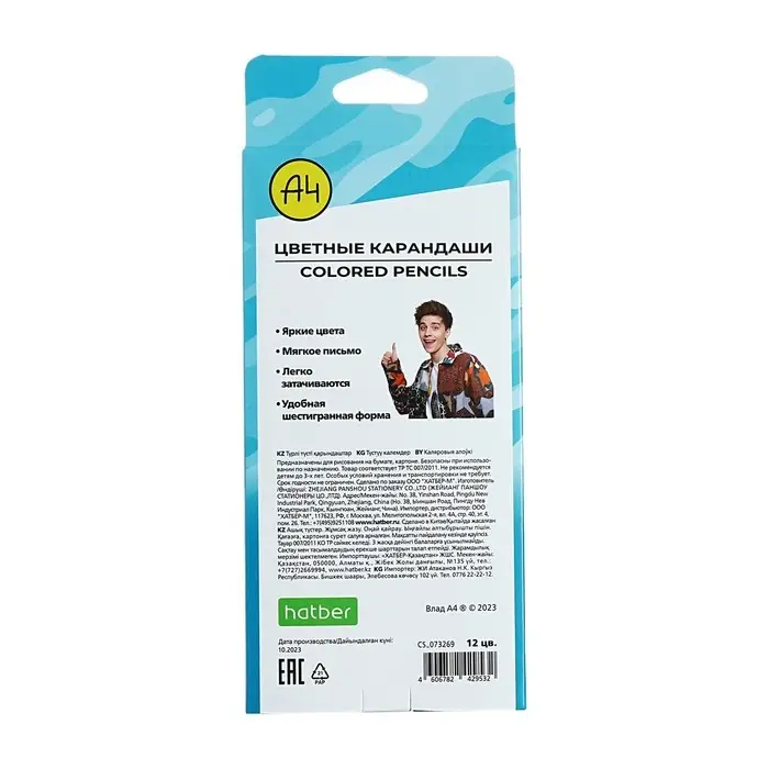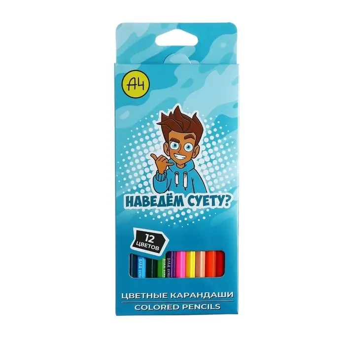 Карандаши цветные, 12 цветов «Влад А4», в картонной коробке с европодвесом