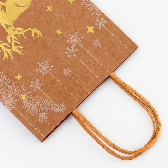 Пакет крафт с золотым тиснением, круглая ручка, «Новый год» 15×21×8 см, 120 г