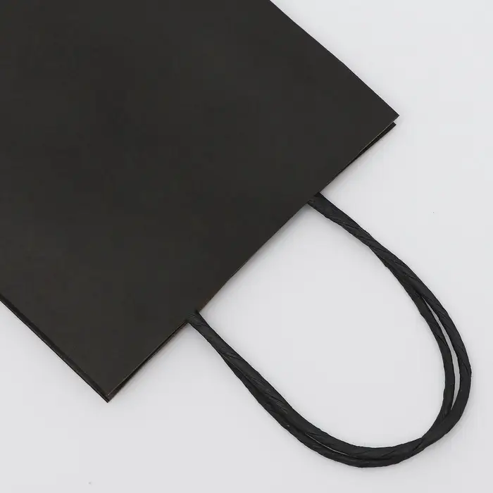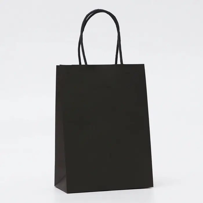 Пакет крафт черный, круглая ручка, 15×21×8 см, 120 г