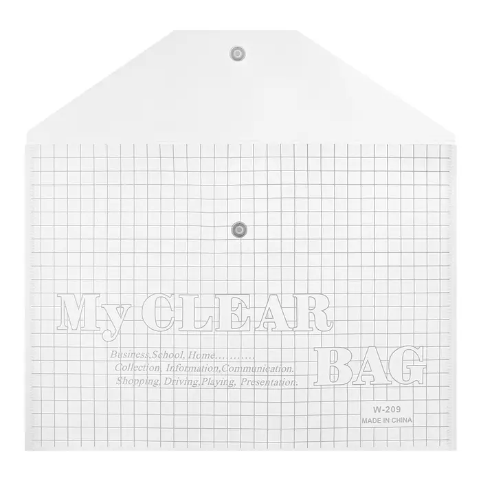 Папка-конверт на кнопке формат А4 100мкр Клетка прозрачная