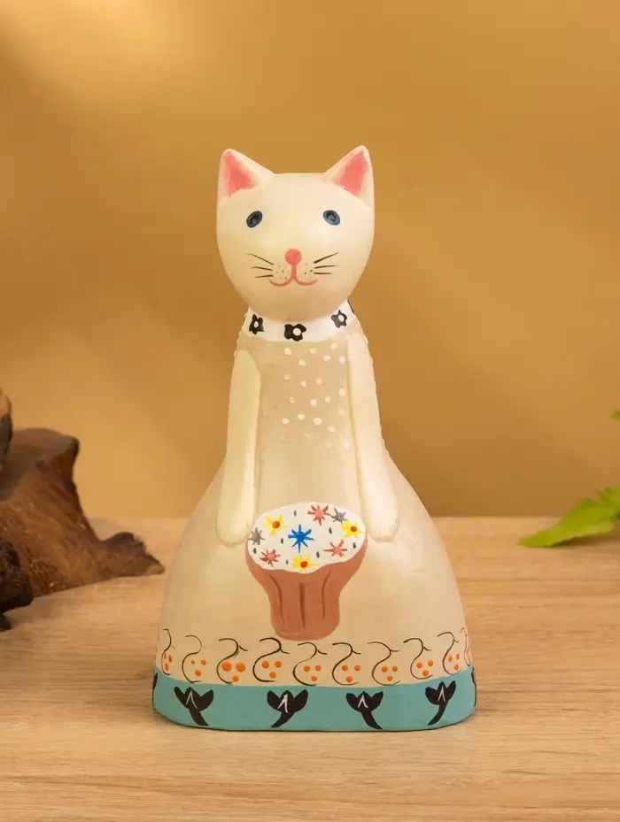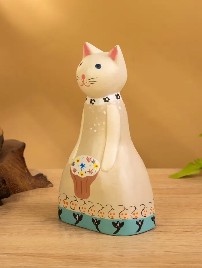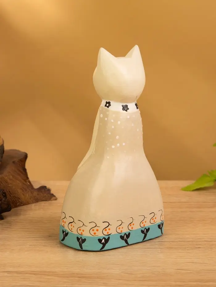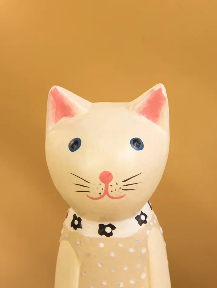 Сувенир дерево "Белая кошка в бежевом платье" 9х5х15,5 см