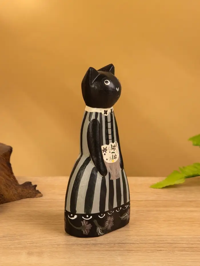 Сувенир дерево "Чёрная кошка в зелёном платье" 6х4х13 см